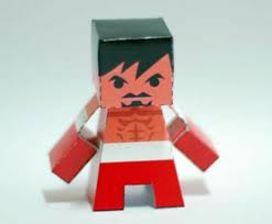 Searching the web I found a paper model of Manny "Pac-Man" Pacquiao designed by PaperToy Adventures and another from robeastblog. The models are very simple, more like a box model of him in red trousers with details of his six packs and the facial hair trademark.